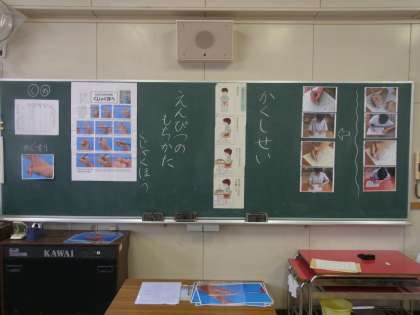 学校でも、時々声をかけながら、指導をしていますが、鉛筆の持ち方は意識しないと、もとの癖のある持ち方に戻ってしまうと言われていますので、ご家庭でも引き続き、正しい鉛筆の持ち方ができるように、見ていただけたらと思います。