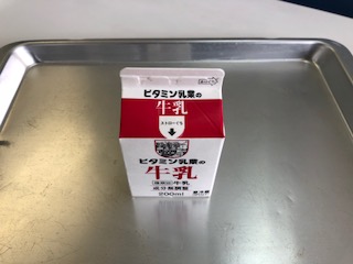 2学期最初の給食は、「マーボーあつあげ丼」「中華スープ」「ミニフィッシュ」「牛乳」です。牛乳が新しい形の紙パック入りになりました。