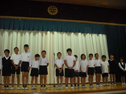 児童朝会で表彰しました おめでとう
