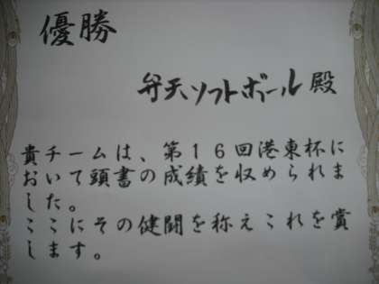 ソフトボールチーム 表彰しました