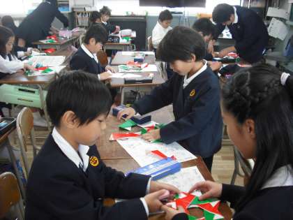 弁天フレンズ班に分かれて 協力してリースをつくりました