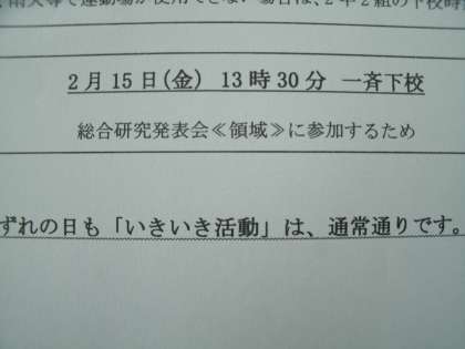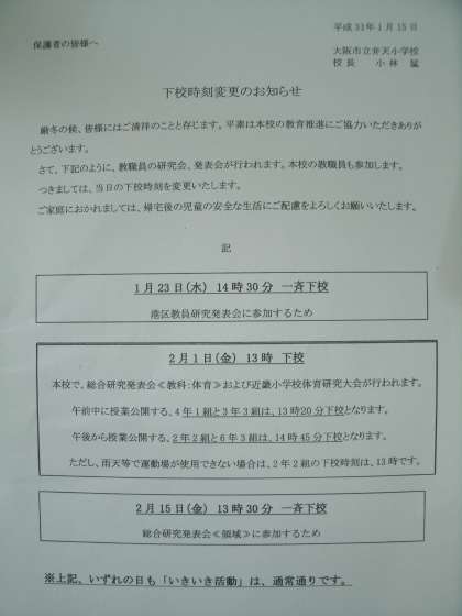 明日の下校時刻 早くなります