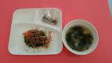 今日の献立は「ビビンバ」「わかめスープ」「アーモンドフィッシュ」「牛乳」です。...