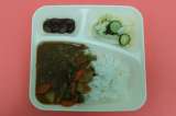 今日の献立は 「ビーフカレーライス」 「グリーンサラダ」 「うずら豆の...