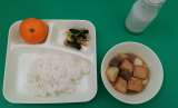 今日の献立は、「関東煮」「はくさいとほうれん草のおひたし」「みかん」「ごはん」...
