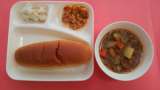 今日の献立は、 「たこボール」「洋風煮」「だいこんのサラダ」「黒糖コッペパン」「...
