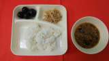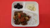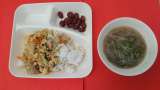 今日の献立は、「ビーフカレーライス(米粉)」「キャベツのサラダ」「ぶどう(巨峰...