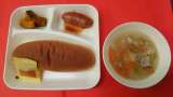 今日の献立は、「フランクフルトのケチャップソース」「スープ」「焼きかぼちゃ」「...
