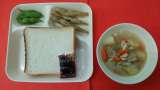 今日の献立は、「いわしてんぷら」「じゃがいものスープ煮」「枝豆」「食パン・いち...