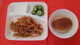 今日の献立は、「イタリアンスパゲッティ」「きゅうりのピクルス」「黒糖クレセント...