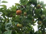 校庭の柿の実が色付き始めました。大きな柿の実がたくさんなっています。 ミカン...