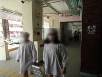 校庭の端で