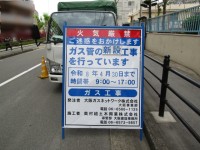 学校の正門のすぐ近くで、ガス管の新設工事が行われています。期間は4月30日までで...