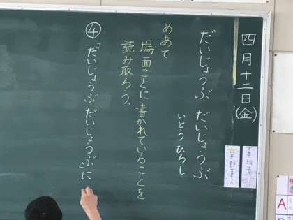5年生国語「だいじょうぶだいじょうぶ」の学習です。音読の声がとても素晴らしく、教室中に響く声でした。ゆっくりはっきり、話の中身をかみしめながら読む声だけが聞こえてくるいい空間です。
