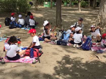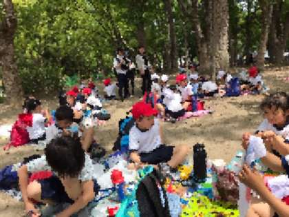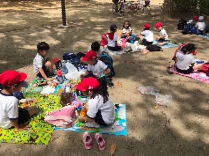 お弁当の時間です。みんなお友達と仲良くたくさん食べようね。