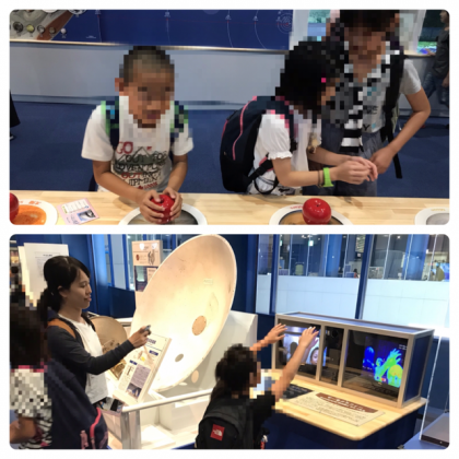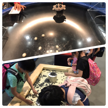 展示の見学はとても楽しく、いろいろな実験をしてみました。科学館の秘密も見つけていました。