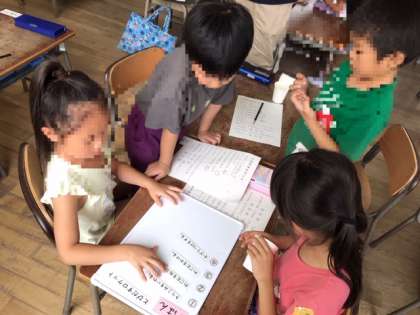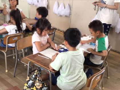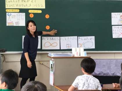 1年生でプログラミング学習の授業をしました。おもちゃをつくる順序を考える内容です。子ども達は、自分の考えとお友達の考えを比べてどんな順序にするかを相談します。