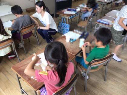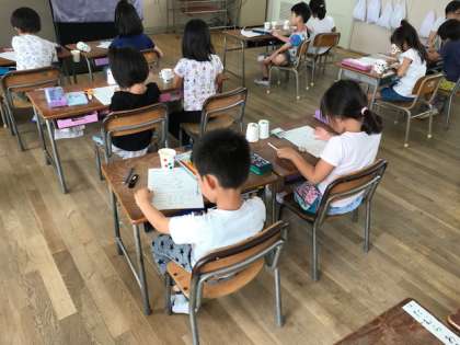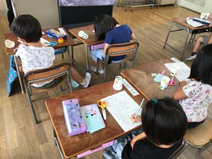 たくさん遊んだ後は、振り返りをします。さっとおもちゃを置いて、プリントを書けていました。