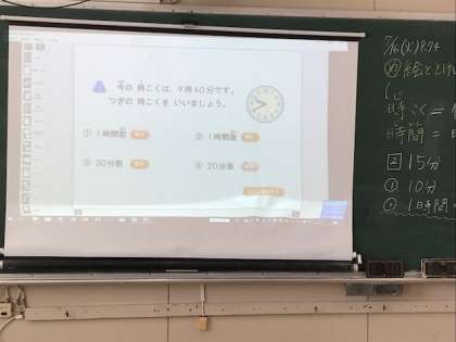 2年生は、算数の授業たね何時何分を調べていました。10時40分の30分前は?何時かな?時計の針を動かして調べます。時々針が言うことを聞かなくて困っいる子もいました。