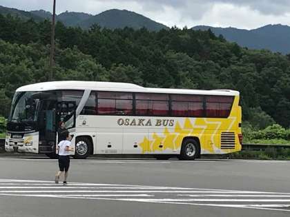 まほろばのSAで2回目の休憩時間です。道は空いています。子ども達はDVを見て元気に過ごしています。