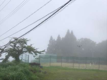 夕べの夜半過ぎからの激しい雨で山道がかなり濡れていること、ガスが出ていることを考慮して予定変更します。食事の後、室内でできるコマ作りと焼き板の絵付けをし、安全なルートで飯ごう炊飯場へ行きます。