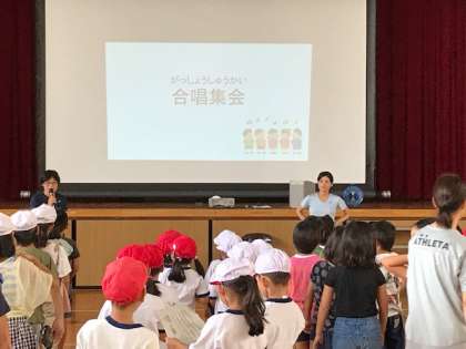 今朝の集会は運動会の歌の練習をしました。いよいよ運動会に向けて練習の開始です。赤組、白組ともに頑張って欲しいです。