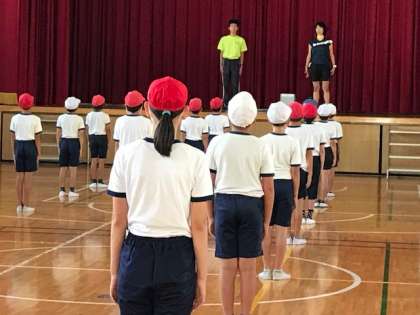 5年生6年生が運動会の練習をしていました。先生の指導をとてもよく受け取って、素晴らしい取り組み姿勢で臨んでいました。当日の完成が楽しみです。