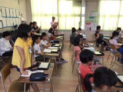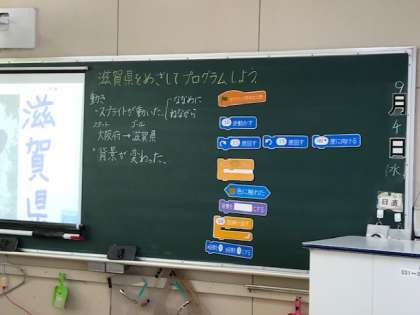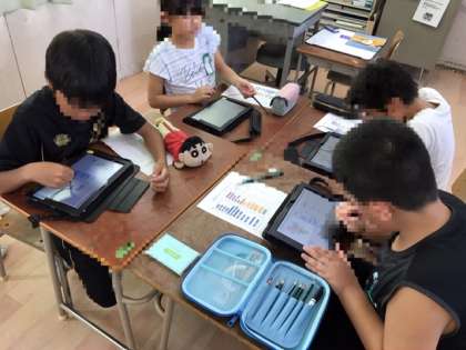 今年度、池島小学校ではプログラミング学習の研究を進めています。今日は、4年生がタブレットを使ってプログラミング学習の授業を公開しました。子どもたちはプログラムを悩みながら考えていました。
