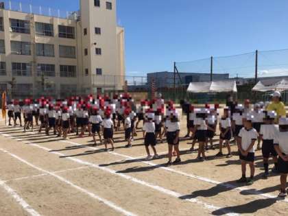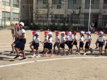 1年生はかわいく歩けました。放送係も緊張です。回れ右の確認もできました。本番が楽しみです。