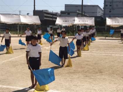 今朝の6年生の練習でフラッグの音が1つに聞こえました。みんなの心が1つになって演技しているところに感動しました。