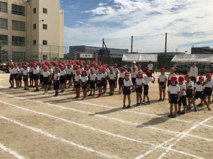 晴天に恵まれて運動会がスタートしました。開会式では、子ども達のやる気がみなぎってあました。
