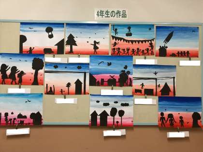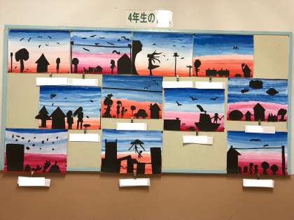 夕焼けの赤と空の青のコントラストがとってもきれいです。たそがれ時のもの悲しい風景が切り取られています。不思議な出来事と出あう時間が表現されています。