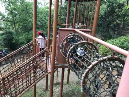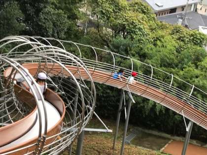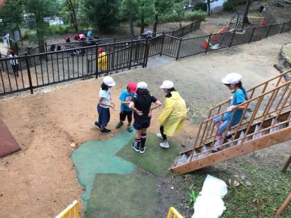 雨はすっかり止んで、大型の遊具で遊びの時間です。ローラー滑り台を滑ってズボンが汚れても平気で楽しんでいました。とても楽しかったようです。