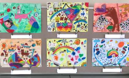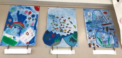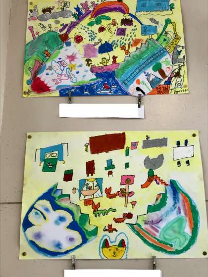 2年生の教室にとても夢のある作品が掲示されていました。一人一人の作品が輝いています。