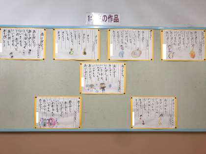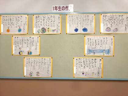 1年生が国語科の学習で、詩の視写をしました。2学期になるとしっかりしたひらがなを書けるようになります。一文字一文字とてもていねいに書けました。これからが楽しみです。