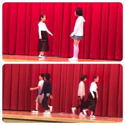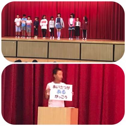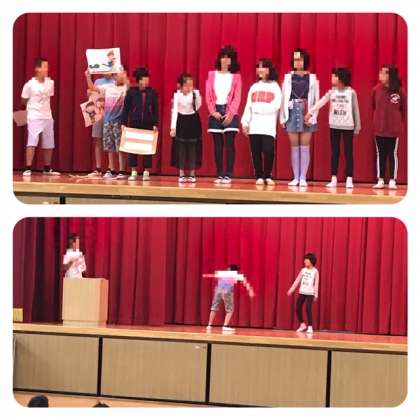 生活委員会の皆さんが、学校生活について、お芝居を入れて啓発してくれました。廊下階段を歩く、あいさつをする、時刻を守るの3つの大切な約束を伝えていました。