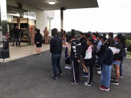 今夜お世話になる旅館橘さんに到着し、開舎式を行い、避難訓練をしました。生活態度に期待できそうです。