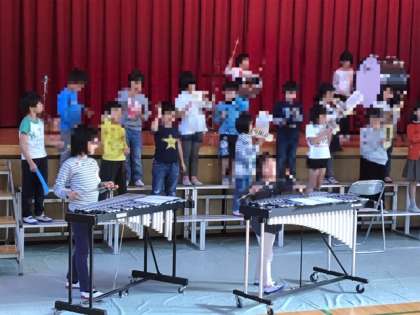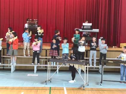 今日から講堂に楽器を運んで練習が始まりました。1.2年生が合奏の練習を頑張っていました。鍵盤ハーモニカを一生懸命吹いているのがかわいいです。