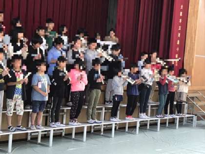 5時間目には、3.4年生が演奏の練習をしていました。入退場も方法も覚えて、演奏する立ち位置も覚えていました。演奏もずいぶんまとまって来ています。
