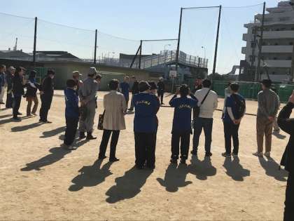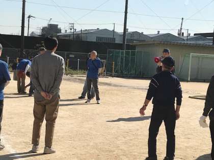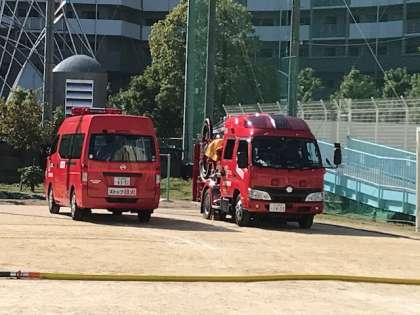 子ども達は、保護者の皆さんと寮の先生に受け渡し訓練で一緒に帰宅しました。その間に運動場では、地域の防災訓練が消防署の指導のもと引き続き行われていました。