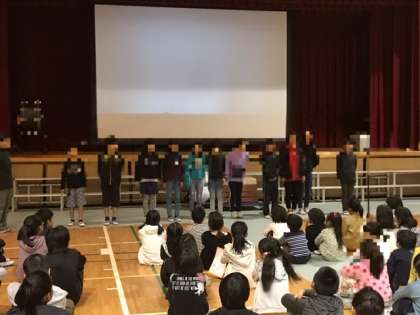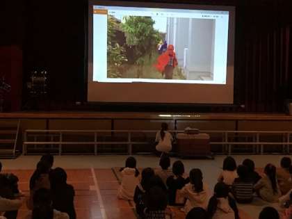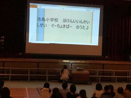 続いて保健委員会のや作成したVTR発表でした。昨年の姿勢戦隊タダスンジャーに続き、姿勢忍者が登場しました。みんなのよい姿勢を保てるように歌も作ってくれました。