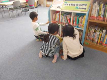 図書館に新しい本が来ました。きんき教育財団の助成を受けて、図書館に新刊のコーナーを作りました。さっそく子ども達が読みに来てくれています。