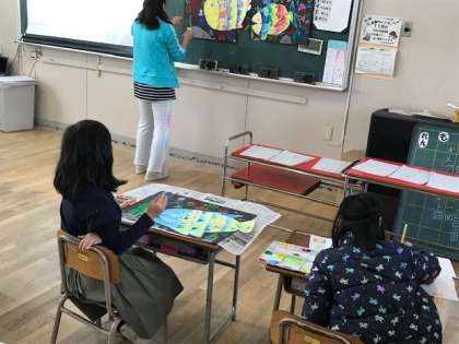 2年生が図工の時間にとっても素敵な魚の絵を描いていました。いきいきと泳いでいる背景もきれいに仕上げていました。みんなの魚が泳ぐのが楽しみです。