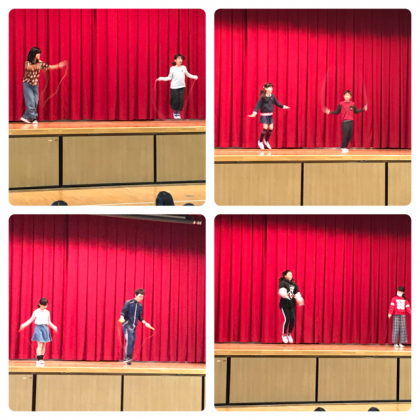 > 委員会発表で、運動委員会のみんなが普段の仕事の内容を教えてくれました。その後、縄跳びの技をたくさんして見せてくれました。縄跳び週間が始まります。みんな頑張って欲しいです。
