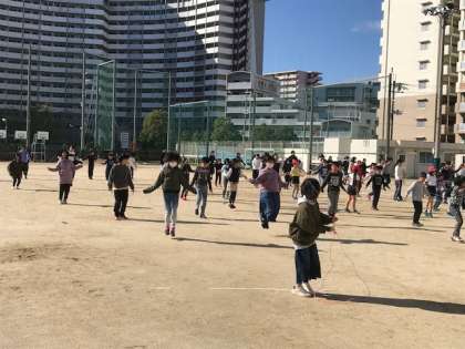 今日からなわとび週間が始まりました。全員運動場に出てなわとび運動に挑戦します。頑張って上達してほしいです。