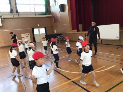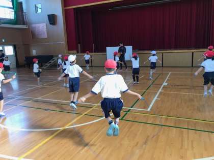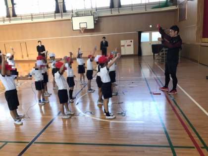 12月9日に、筑波大学附属小学校の齋藤先生にお越しいただき、体育科の研究会を実施しました。初めは1年生です。なわとびから教えていただきました。