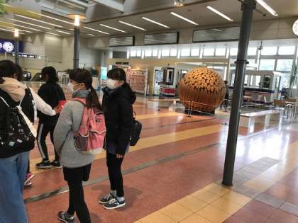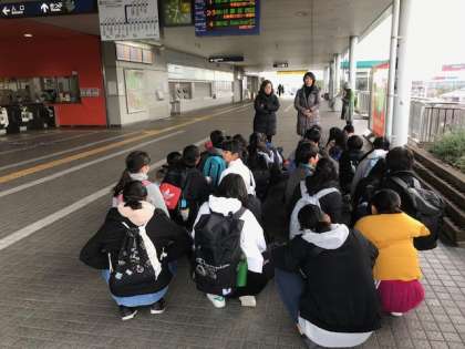 今日は卒業遠足です。万博公園駅に到着しました。気を引き締めて活動をしていきましょう。