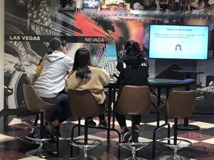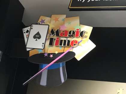 マジックタイムでカードマジックに挑戦です。ラスベガスでゲームをしている雰囲気そのままです。