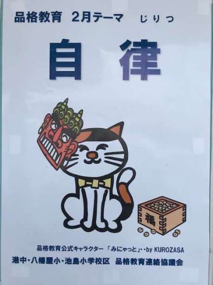 2月の品格教育のテーマは「自律」です。自分で自分を制御して、行動することです。子ども達には、自分の考えをしっかり持って行動して欲しいものです。