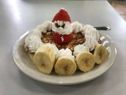 6年生が調理実習で作ったパンケーキです。とってもかわいくて美味しそうです。